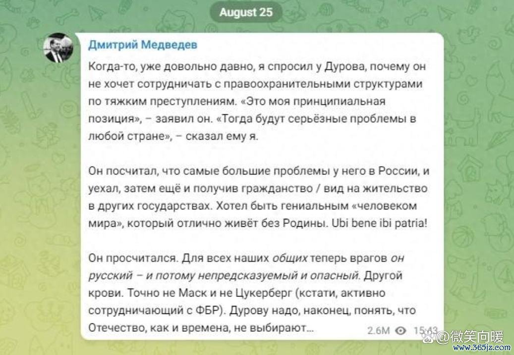 杜罗夫的被捕如并吞颗重磅炸弹,在科技圈和政界引起了激烈反响。俄罗斯联邦安全会议副主席梅德韦杰夫对此事发表了残忍挑剔,他觉得杜罗夫离开故国事个紧要舛讹,咫尺应该深远刚硬到故国的攻击性。梅德韦杰夫的言论犹如当头一棒,不仅针对杜罗夫个东谈主,更是对那些心胸雄壮抱负的年青东谈主的警示。