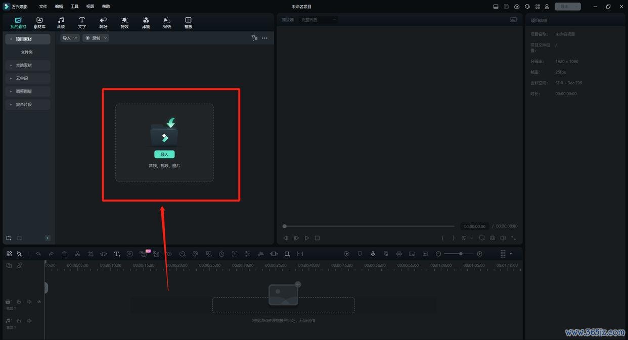 导入视频:大开万兴喵影,点击“导入”将需要剪切的视频文献上传。